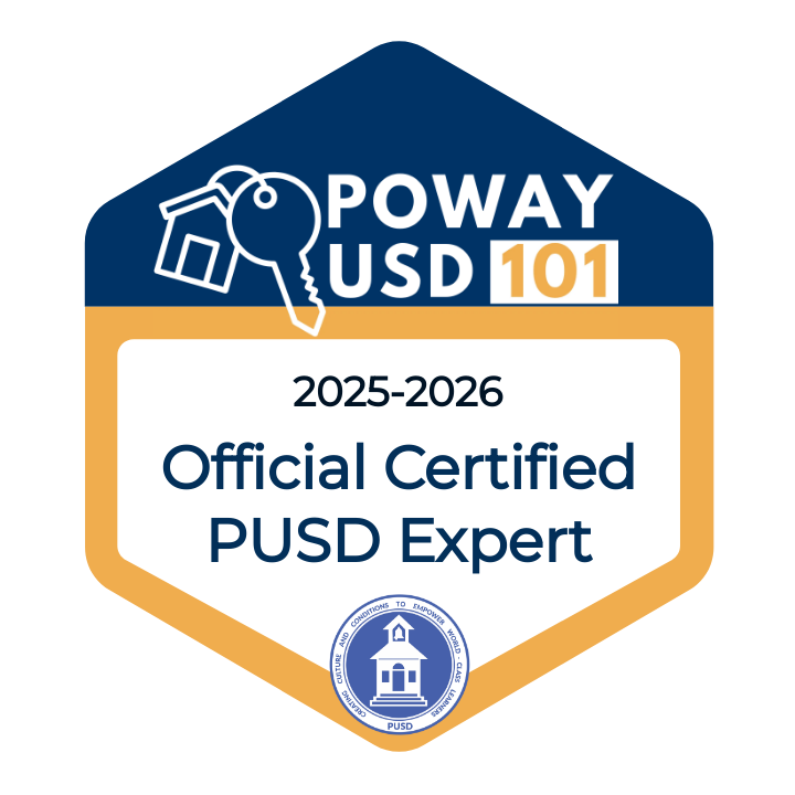 This credential is awarded to real estate professionals who have successfully completed Poway USD 101, a specialized training program offered by Poway Unified School District. Recipients participated in an in-depth workshop of the district’s schools, educational programs, boundaries, enrollment processes, and performance data, equipping them to better serve clients who prioritize education in their home-buying decisions.