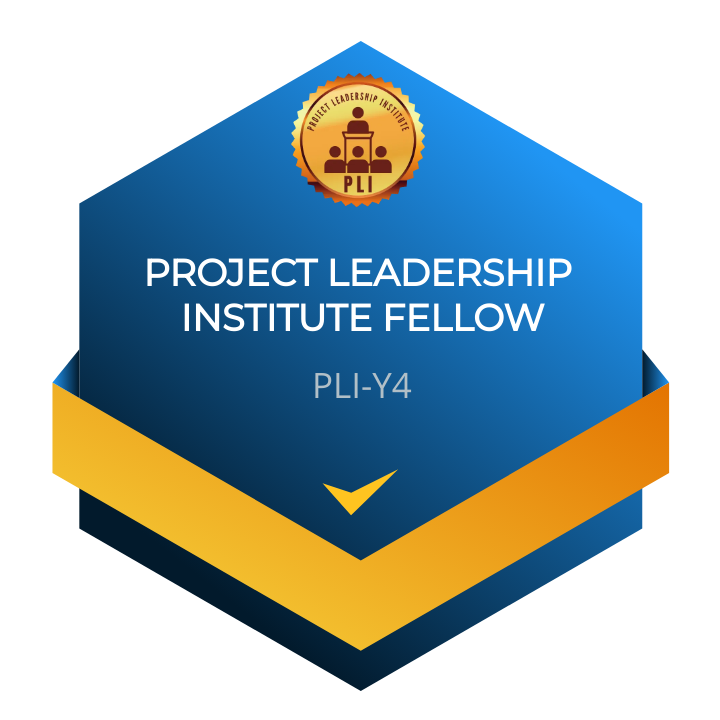 This certificate recognizes the successful completion of the Project Leadership Institute (PLI) – Year 4 Program, reflecting sustained engagement in advanced leadership development and applied project leadership practice.