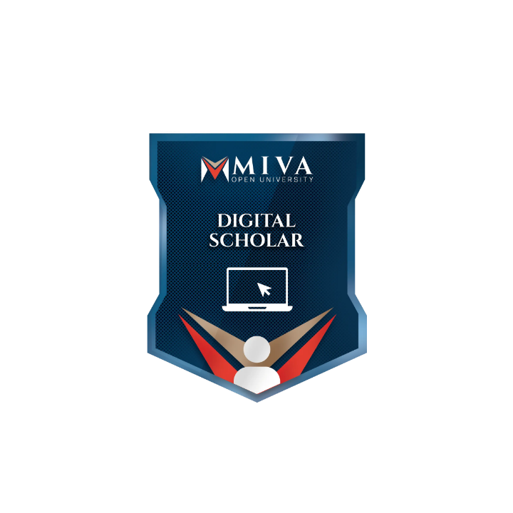The Digital Scholar Badge recognizes the receiver's achievements and skills in the Introduction to Computing course at Miva Open University, allowing them to showcase the badge in their CV and professional profiles.