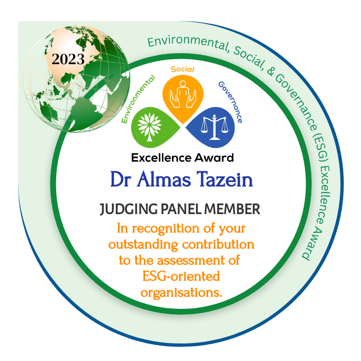 This credential is a testament to the Judging Panel Member’s diligence, professionalism, and expertise in objectively evaluating ESG-oriented organisations (via written submissions, presentations and live Q&A Sessions). The member’s association with the award is deeply valued and appreciated.